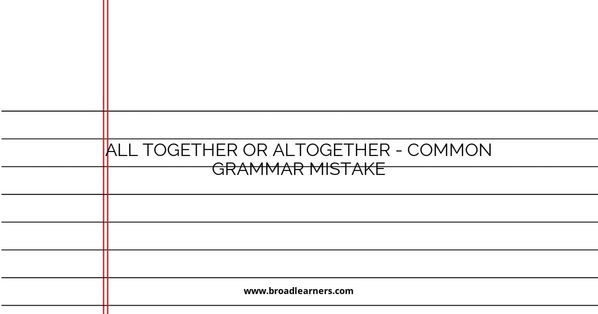 Although all together and altogether look almost the same, their meanings are clearly different. One refers to grouping, and the other refers to degree or total amount. By understanding this distinction and practicing with real examples, you can avoid this common grammar mistake.