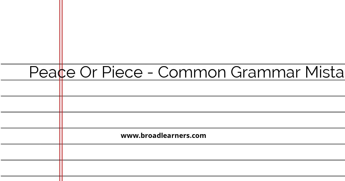 'Peace' and 'piece' are commonly confused words in English grammar. Understanding the difference between 'peace' and 'piece' is important to use them correctly in written and spoken English.